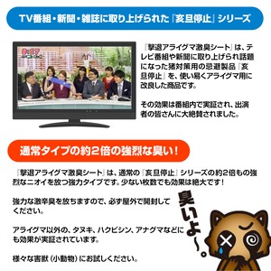 『撃退アライグマ激臭シート』はTV番組・新聞・雑誌に取り上げられて大変話題になった『亥旦停止』シリーズ製品です。